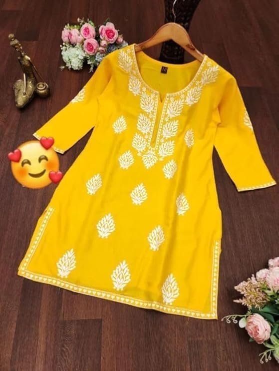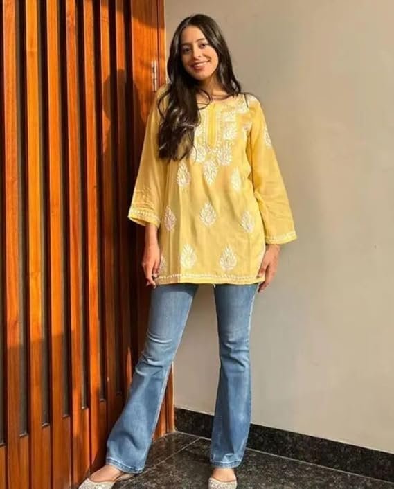 Cotton Kurta for Women – Lakhnavi Chikankari Embroidered Ladies Kurti, Stylish Girls Top, Ethnic Half Kurtas, Tunic Design Woman Kurtis